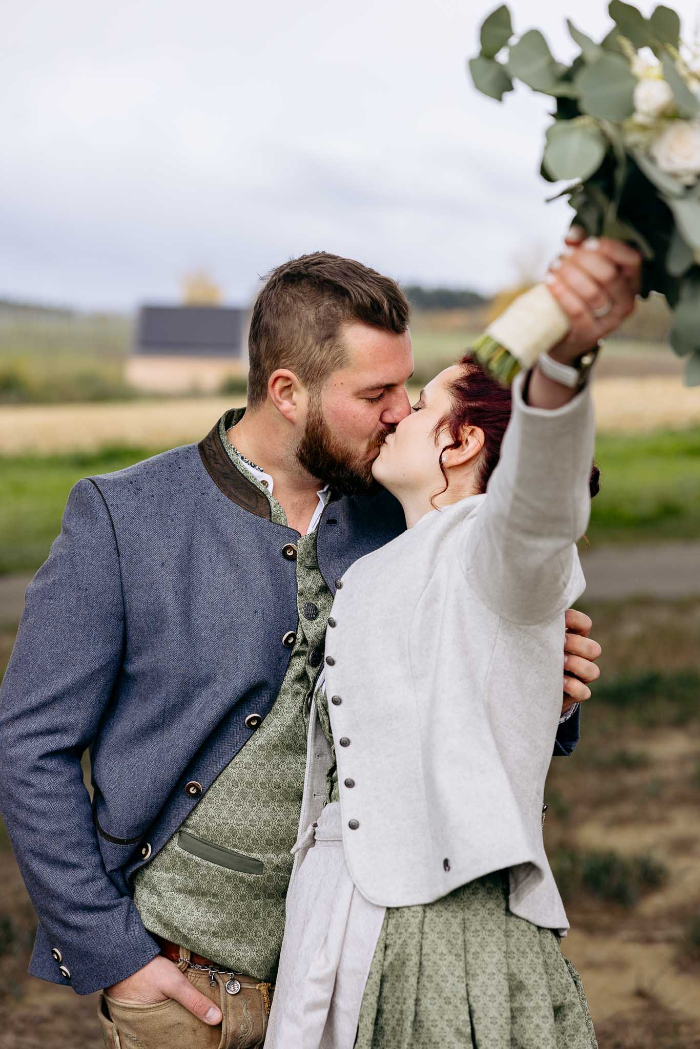 Lena und Martin: Ein Brautpaar mit Brautdirndl aus der Hallertau