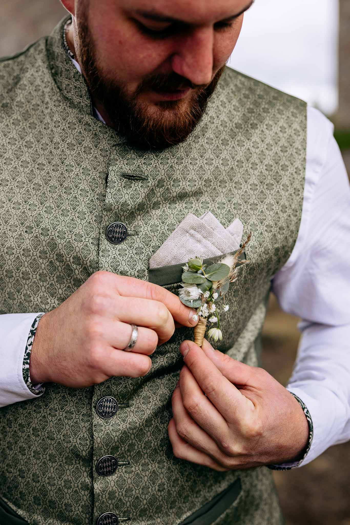 Wir als Hochzeitsfotografen Wolnzach durften Lena und Martin sowohl beim Kennenlern-Shooting als auch an ihrer Hochzeit begleiten. Die beiden haben sich für das Holledauer Herzens Gwand entschieden, und das war definitiv die richtige Wahl! Lenas Brautdirndl Pfaffenhofen war ein absoluter Hingucker – handgefertigt, perfekt sitzend und mit so viel Liebe zum Detail. Martin trug dazu eine maßgeschneiderte Weste zum Janker und zur Lederhose, die perfekt harmonierte. Die beiden strahlten nicht nur vor Glück, sondern auch in ihrer einzigartigen Tracht!