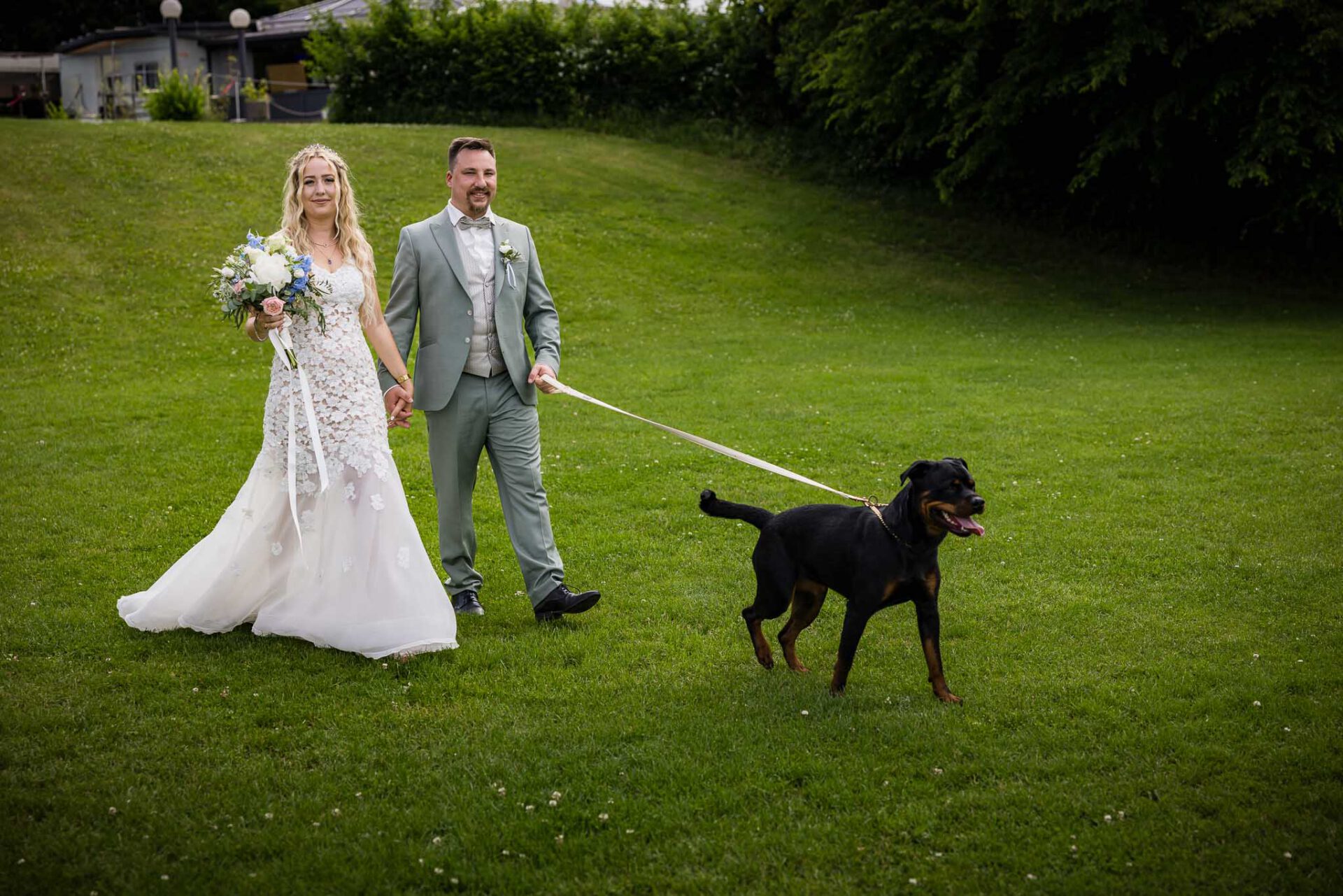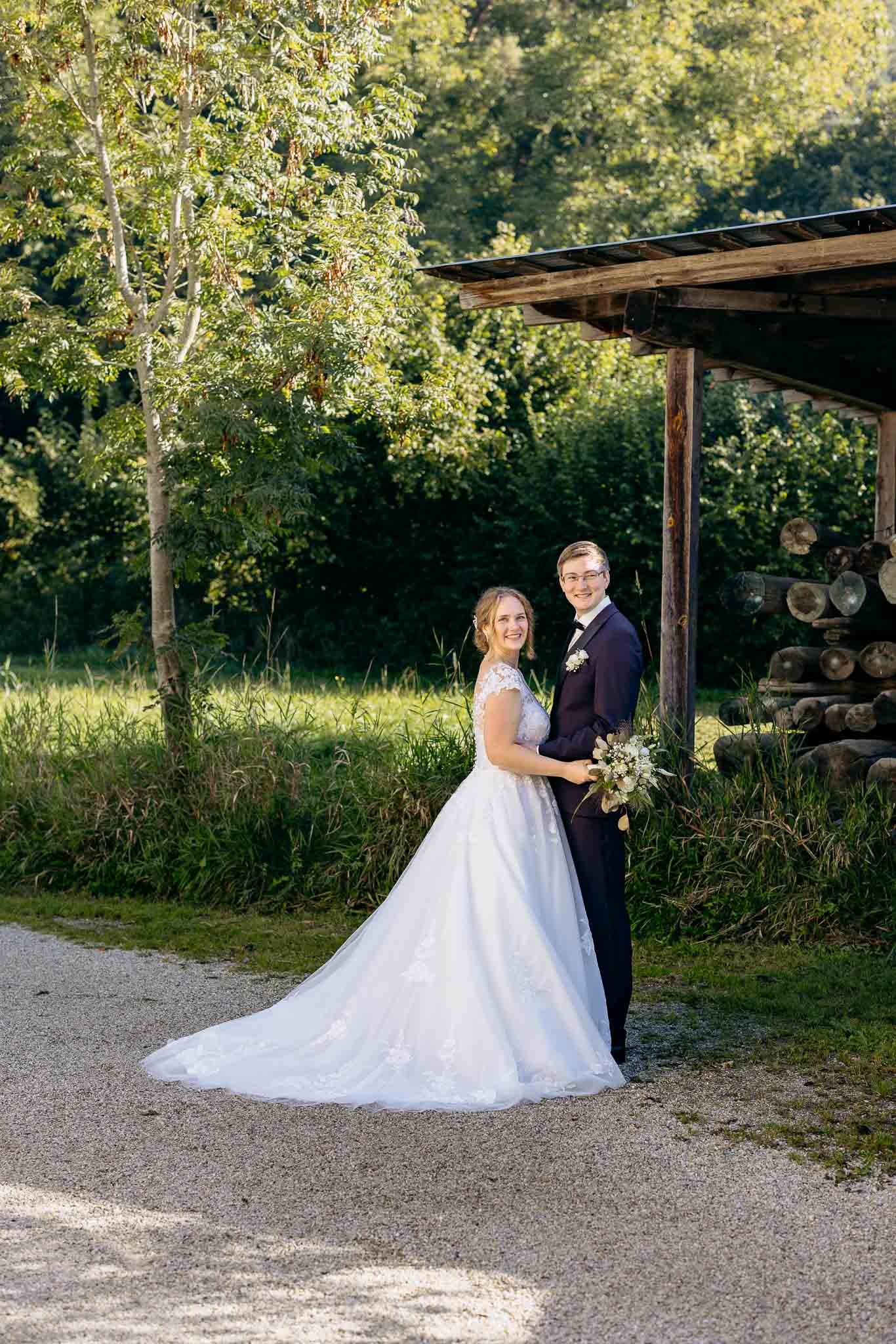 Ein weiteres Highlight war unser Brautpaar Julia und Michael, die gemeinsam im Landgasthof Rockermeier in Unterpindhart geheiratet haben. Beide fanden ihre perfekten Hochzeitsoutfits im Hochzeitshaus BOOS – sowohl Julias romantisches Brautkleid als auch Michaels stilvoller Anzug stammten aus diesem wunderbaren Geschäft. Die freie Trauung fand direkt vor Ort im Landgasthof statt, und die beiden strahlten vor Glück. Der First Look war unglaublich emotional, und auch während des Brautpaarshootings war deutlich zu spüren, wie wohl sich beide in ihrer Brautmode fühlten. Für uns als Hochzeitsfotografen ist das immer ein klares Zeichen für eine gelungene Auswahl.