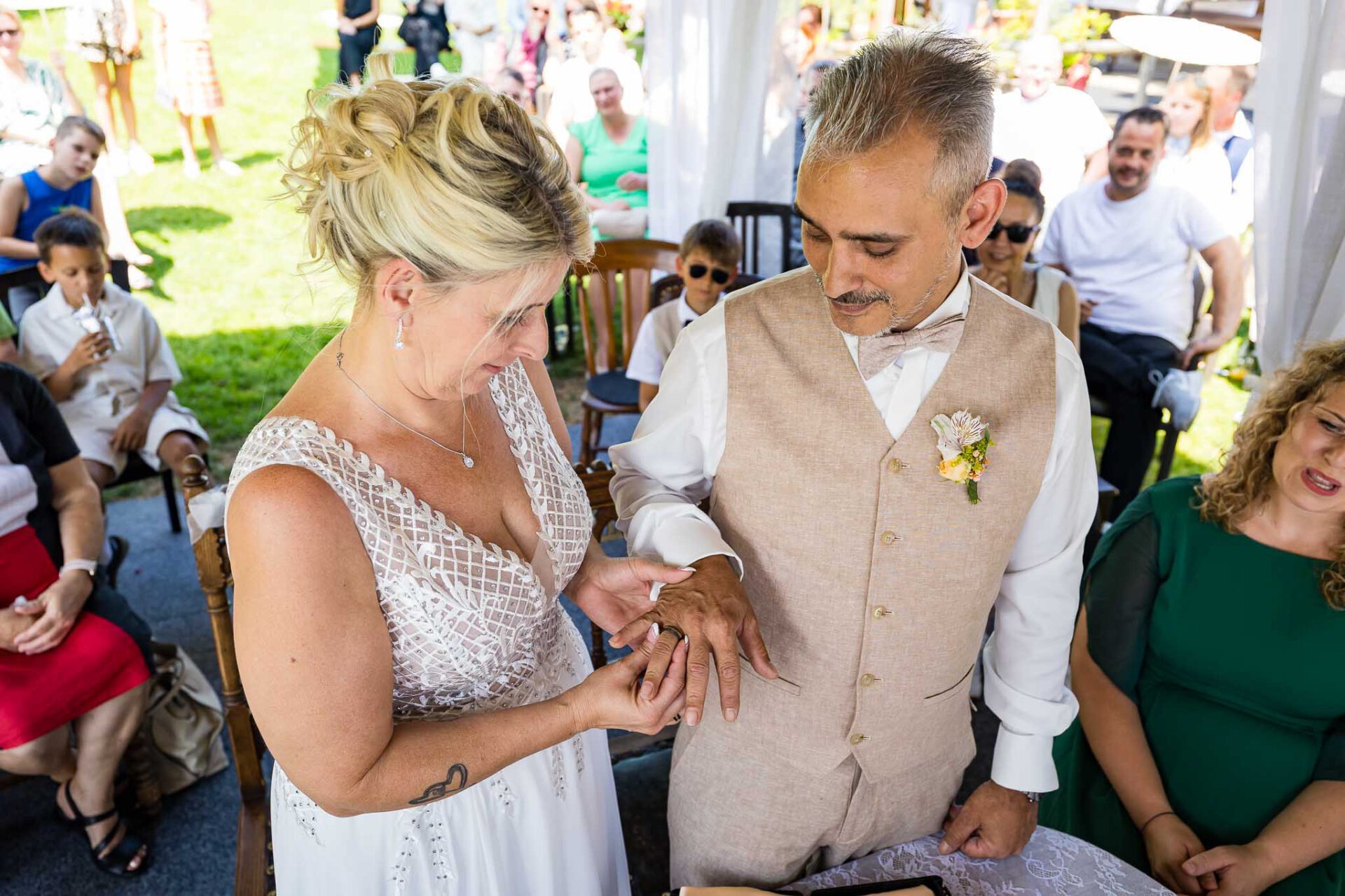 Der Standesbeamte bei der Hochzeit von Sabine und Deniz hat eine sehr emotionale Rede gehalten, die perfekt auf das Paar zugeschnitten war. Obwohl es eine standesamtliche Trauung war, konnte das Brautpaar den Ablauf deutlich beeinflussen und persönlich gestalten. Solche individuellen Zeremonien machen euren Tag unvergesslich und geben ihm eine ganz persönliche Note.