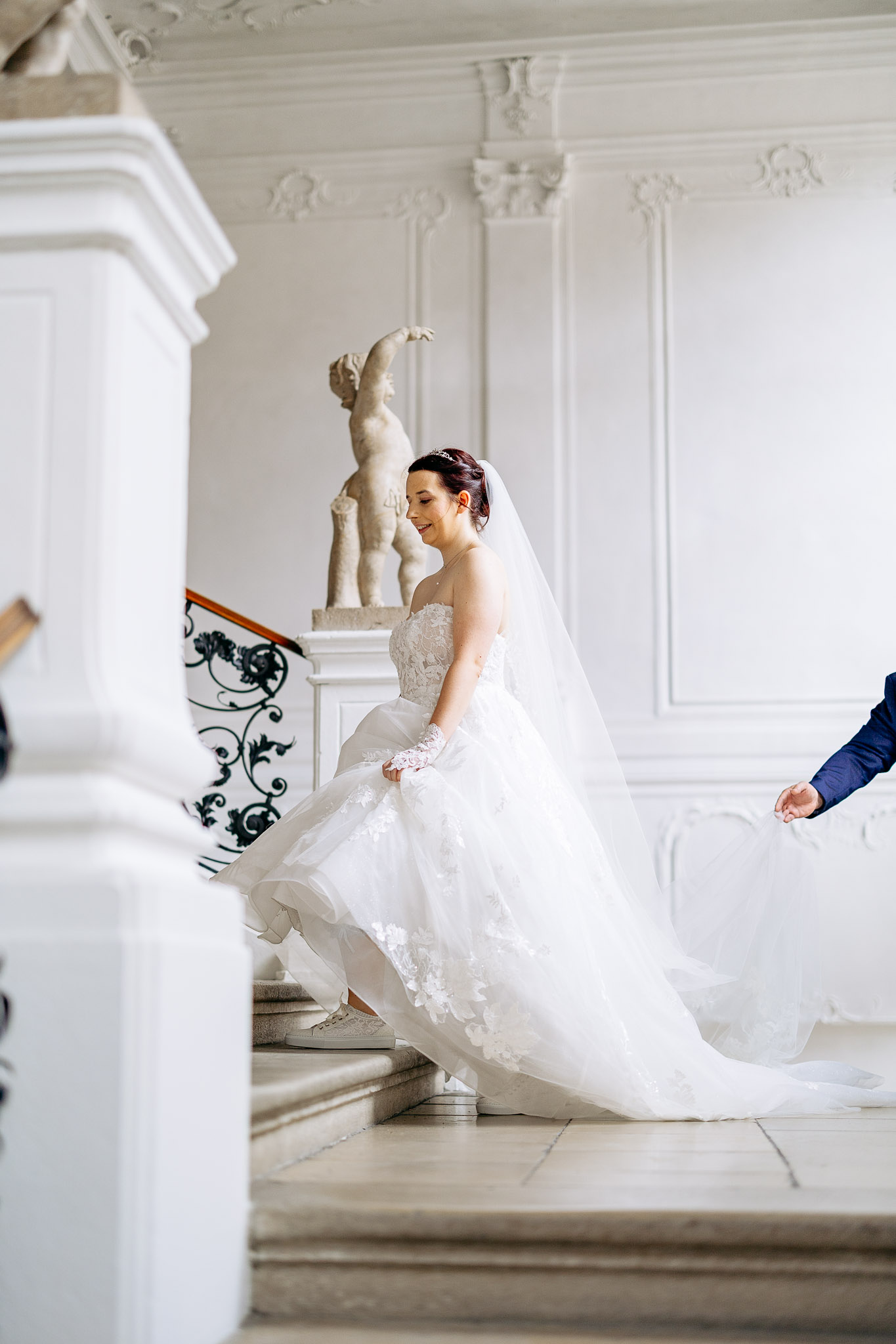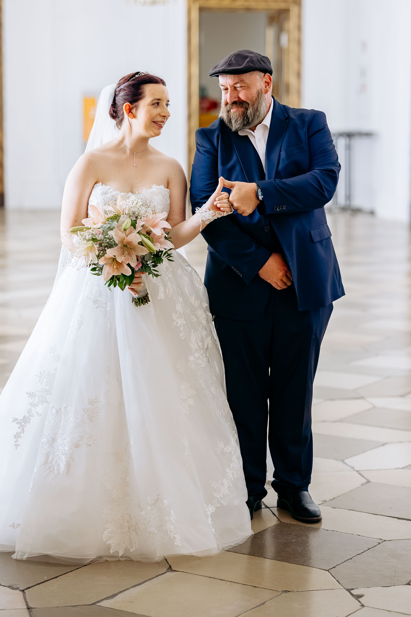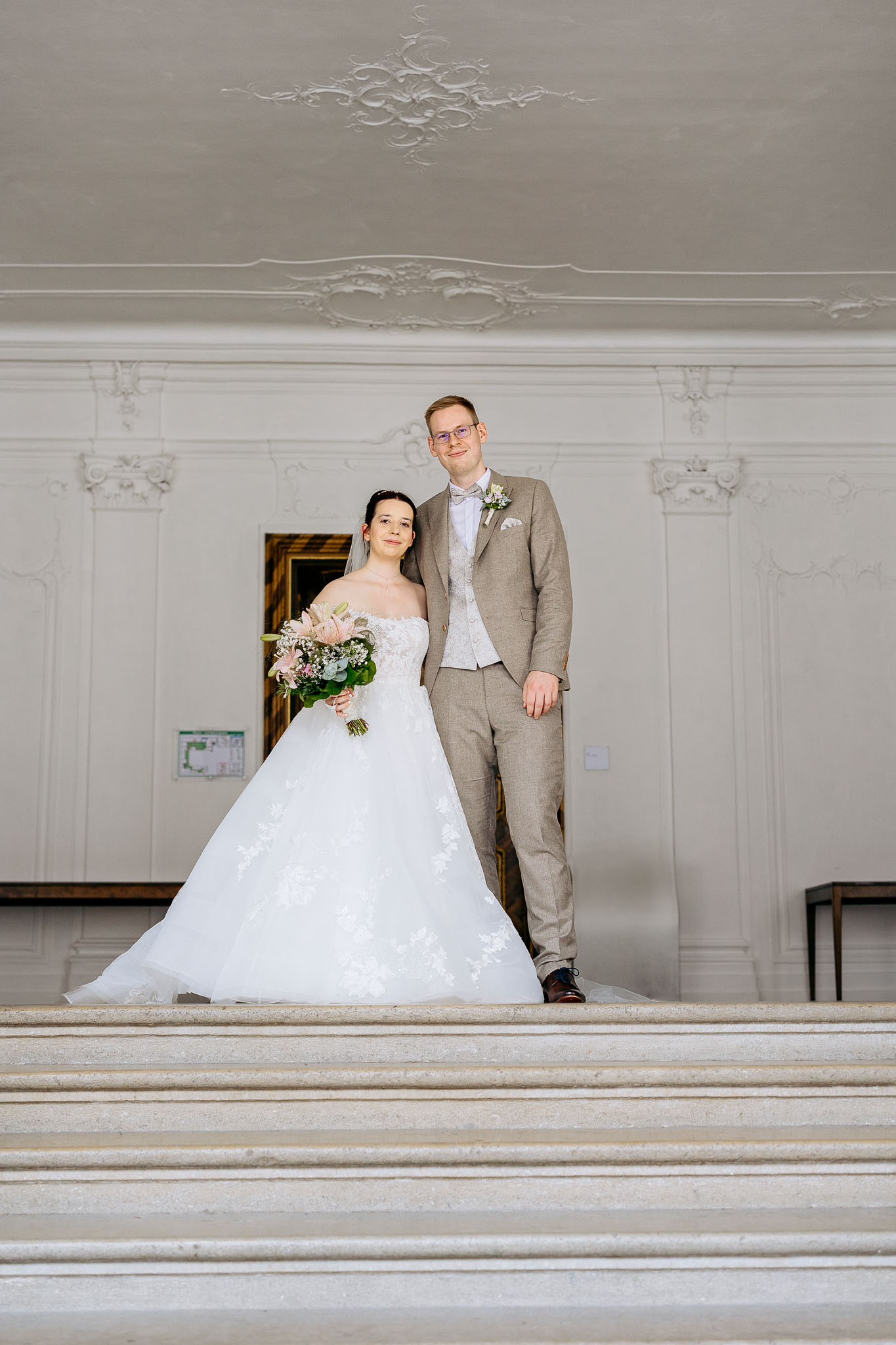 Schon der Weg zum Standesamt ist ein echtes Highlight. Breite, majestätische Treppen führen hinauf zum Eingang und lassen euch fühlen, als würdet ihr ein Schloss betreten. Für uns als Hochzeitsfotograf in Eichstätt bietet dieser Aufgang fantastische Fotomotive – von romantischen Paarfotos bis hin zu emotionalen Momenten beim Einzug.