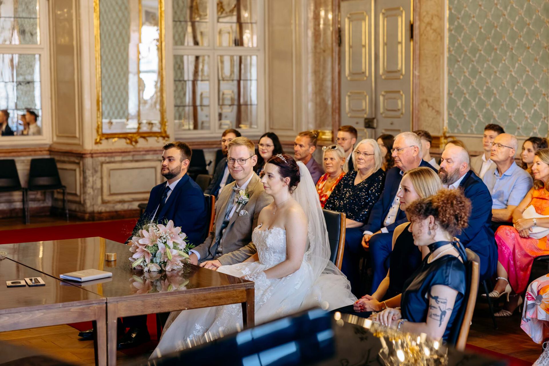 Stellt euch vor, ihr gebt euch das Jawort in einem prachtvollen Saal mit historischem Charme, umgeben von euren Liebsten. Außerdem habt ihr hier die Möglichkeit, eure Zeremonie musikalisch zu gestalten – denn im Raum steht sogar ein Piano. Ob mit Sängerin, Pianist oder eurer eigenen Musikauswahl: Hier sind euren Wünschen kaum Grenzen gesetzt.