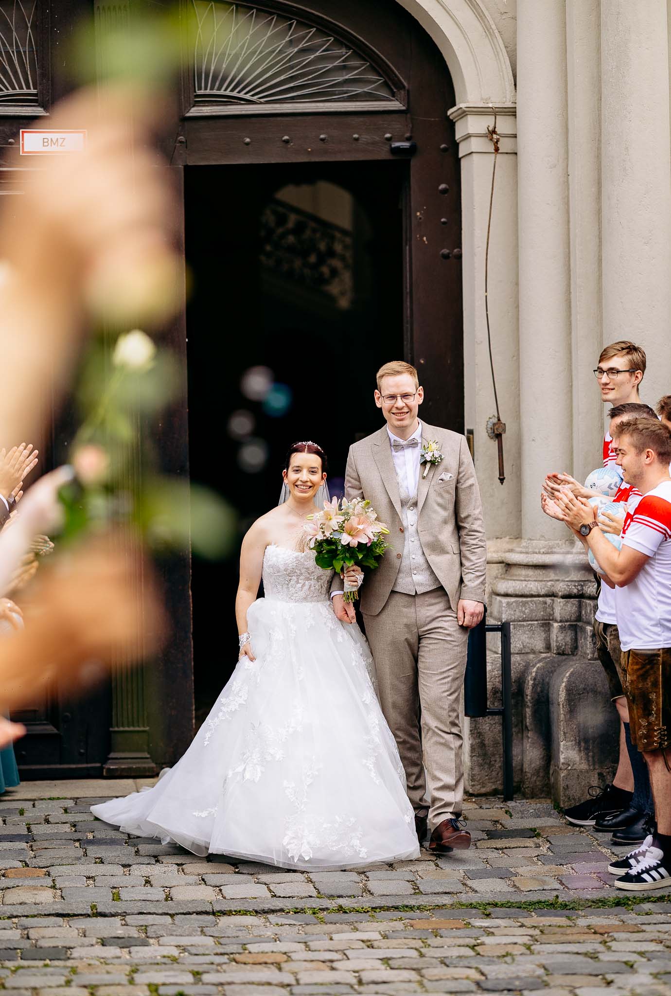 Zudem ist die Umgebung ideal für kreative Aufnahmen nach der Zeremonie. Bei Maja und Michael wurden die beiden draußen von einem fröhlichen Spalier empfangen, was für wunderschöne und lebendige Bilder sorgte. Solche Momente machen euren Tag unvergesslich und geben euch Erinnerungen für die Ewigkeit.