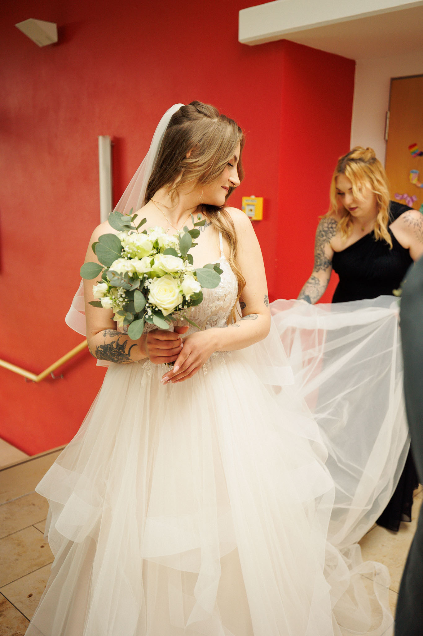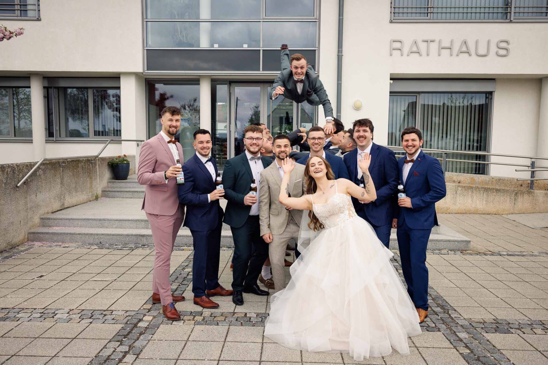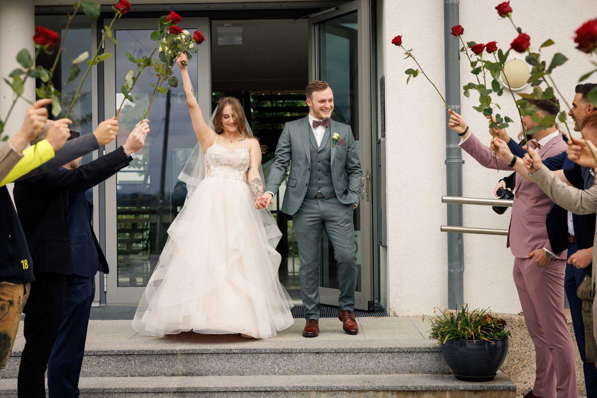 Nach der Zeremonie bietet das Rathaus zudem ideale Möglichkeiten für weitere Fotos. Bei Sara und Lukas haben wir beispielsweise einen wunderbaren Spalier vor dem Gebäude fotografieren können. Aber auch bei schlechtem Wetter seid ihr bestens aufgehoben, denn der große Vorraum direkt im Gebäude bietet ausreichend Platz für den ersten Sektempfang mit eurer Hochzeitsgesellschaft.