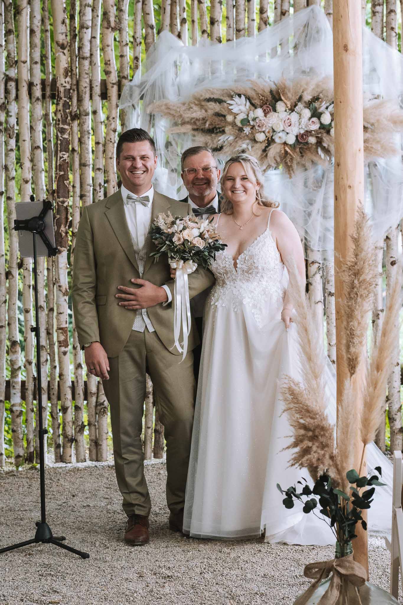 Jetzt kommt noch etwas Besonderes: Roland ist nicht nur Trauredner, sondern seine Frau Sabine ist auch Sängerin und hat eine eigene Band. Das bedeutet für euch, dass ihr alles aus einer Hand bekommen könnt. Sabine hat bei der Hochzeit von Jessi und Manuel während der freien Trauung wunderschön gesungen und die Zeremonie musikalisch begleitet. Außerdem könnt ihr die Band auch für eure Hochzeitsfeier buchen – ein rundum stimmiges Paket, das euren Tag perfekt macht.
