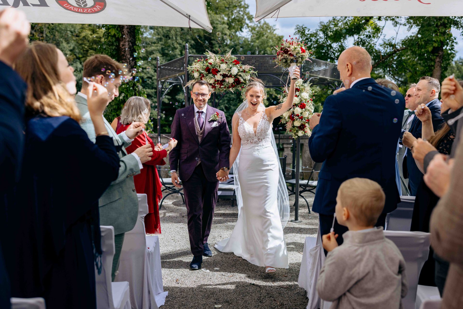 Bei der Hochzeit von Claudia und Marcin, die wir begleiten durften, gab es beispielsweise bewegende Worte der Trauzeugen, die für Gänsehautmomente sorgten. Außerdem ist der Einzug durch das Schloss – vielleicht an der Hand eures Papas – einfach nur traumhaft und lässt garantiert die ein oder andere Freudenträne kullern.